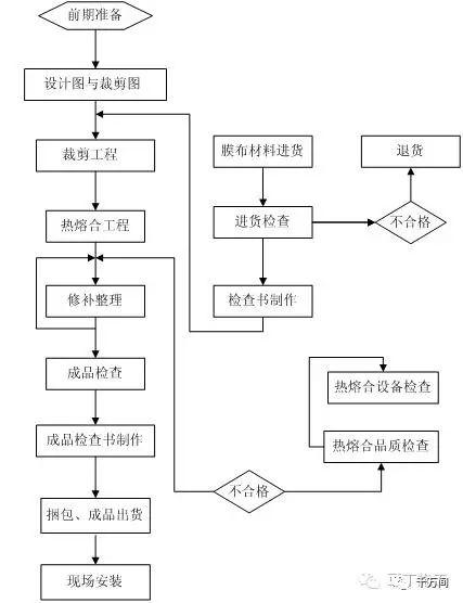 2、膜結構安裝工藝框圖