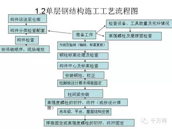 1、單層鋼結構安裝施工工藝: