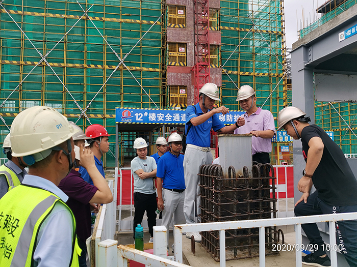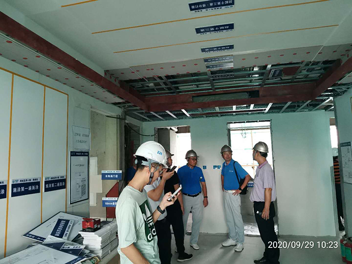 接著(zhù)到施工現場(chǎng)查看室外樣板展示區,對鋼結構安裝流程、一代和二代樓承板工藝、鋼結構防腐防火節點(diǎn)、鋼柱灌注柱芯砼等主要環(huán)節進(jìn)行了深入交流。重點(diǎn)關(guān)注了樣板間的砌筑、ALC墻板安裝、外墻和陽(yáng)臺防滲漏節點(diǎn)及處理方法、內隔墻及鋼板墻的隔熱隔音、鋼樓梯的防腐處理等施工工藝。