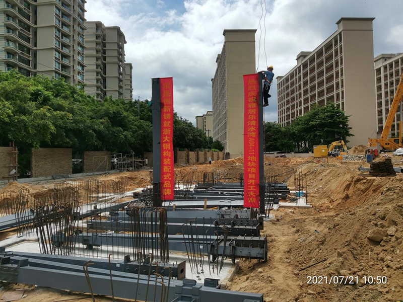 2021年7月21日上午10點(diǎn)30分,在甲方單位、總包單位領(lǐng)導的共同見(jiàn)證下。由浙大鋼構承建的海南清水灣A04-11地塊項目首根鋼柱順利吊裝完成,項目正式進(jìn)入鋼結構主體施工階段。