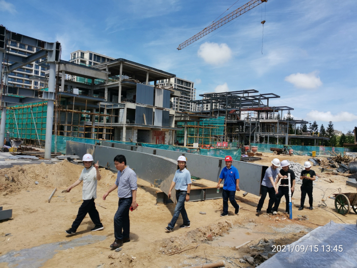 2021年9月15日中午,中陽(yáng)建設集團副總裁朱旻、副總裁吳軼強、總工程師陳偉、江西省建材院院長(cháng)宋冬生、鐵木辛柯設計事務(wù)所王彥超博士一行蒞臨我司承建施工的海南綠城藍灣小鎮香樟苑、紫荊苑、云棲居、小鎮中心鋼結構裝配式住宅項目調研考察,我司項目經(jīng)理駱明松、周杰陪同。