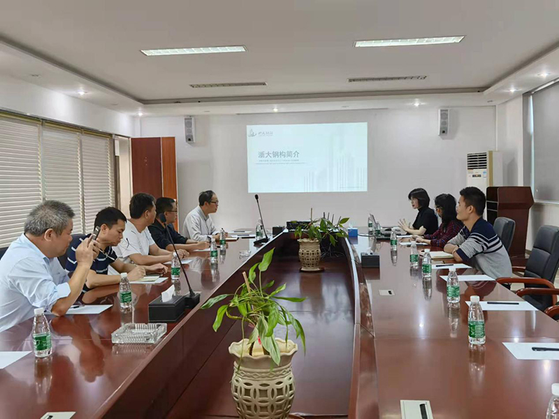 在會(huì )議室技術(shù)交流座談會(huì )上,劉總通過(guò)PPT向考察小組講述了我司的發(fā)展歷程及海南鋼結構裝配式的應用與實(shí)踐,重點(diǎn)介紹了我司專(zhuān)利技術(shù)——隱式鋼框架支撐結構體系,雙方深入交流,與會(huì )氣氛熱烈。