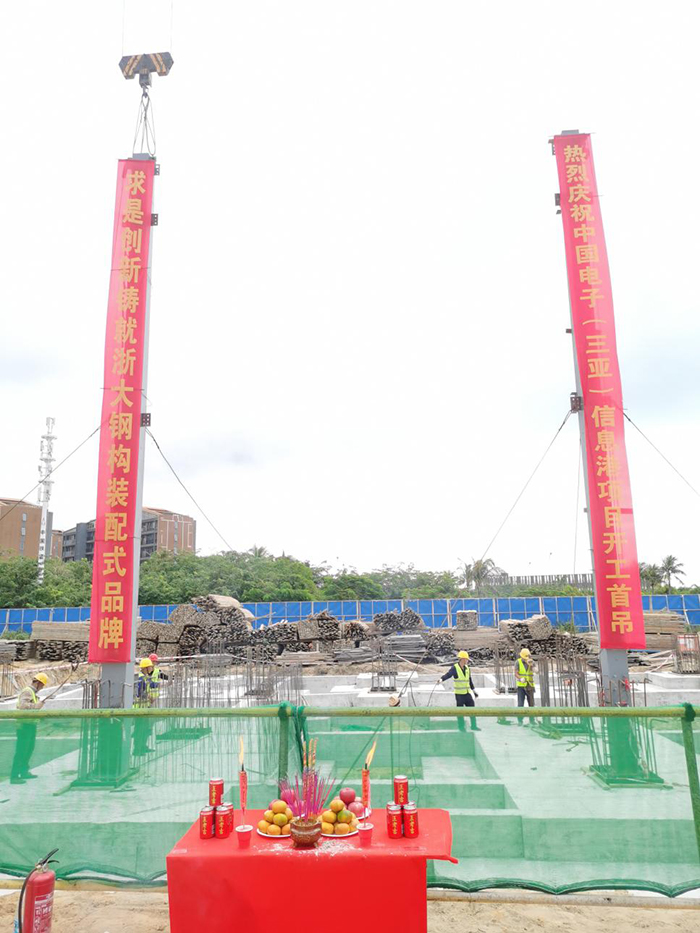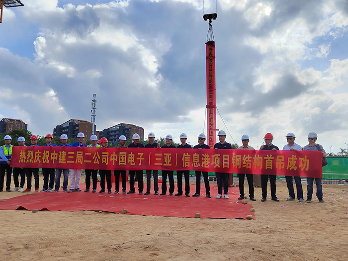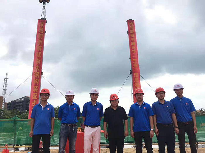 2021年11月17日上午9點(diǎn)30分,在甲方單位、監理單位和總包單位等領(lǐng)導的共同見(jiàn)證下,由海南浙大鋼構承建的中國電子(三亞)信息港03-06-1地塊鋼結構工程首根鋼柱吊裝順利完成,項目正式進(jìn)入施工階段。