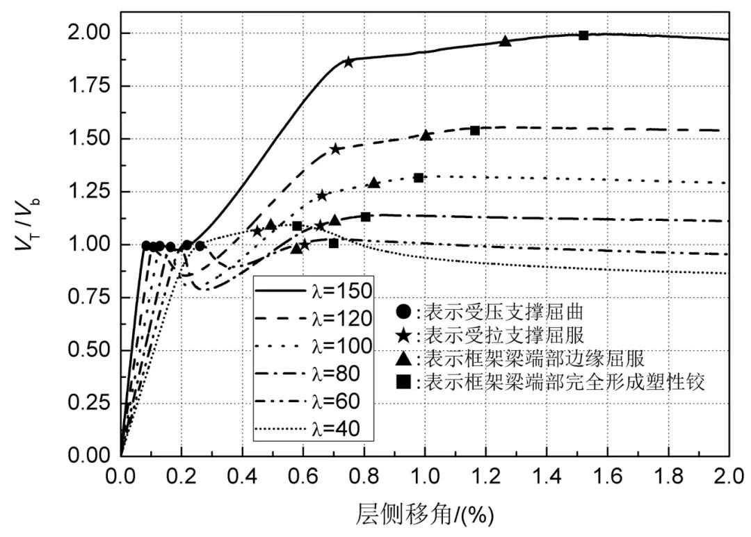 框架和支撐的抗側承載力各占一半時(shí),曲線(xiàn)如圖2所示。