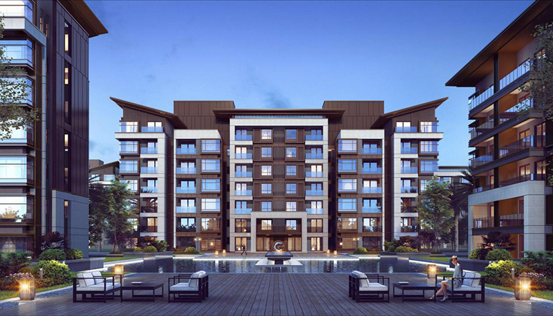 一期規劃用地面積135634.2m2,總建筑面積195259.98m2,計容積率建筑面積為142397㎡,其中度假式住宅139562.54㎡,商業(yè)986.8㎡,公建配套1848㎡。建筑地上7層,局部地下1層。